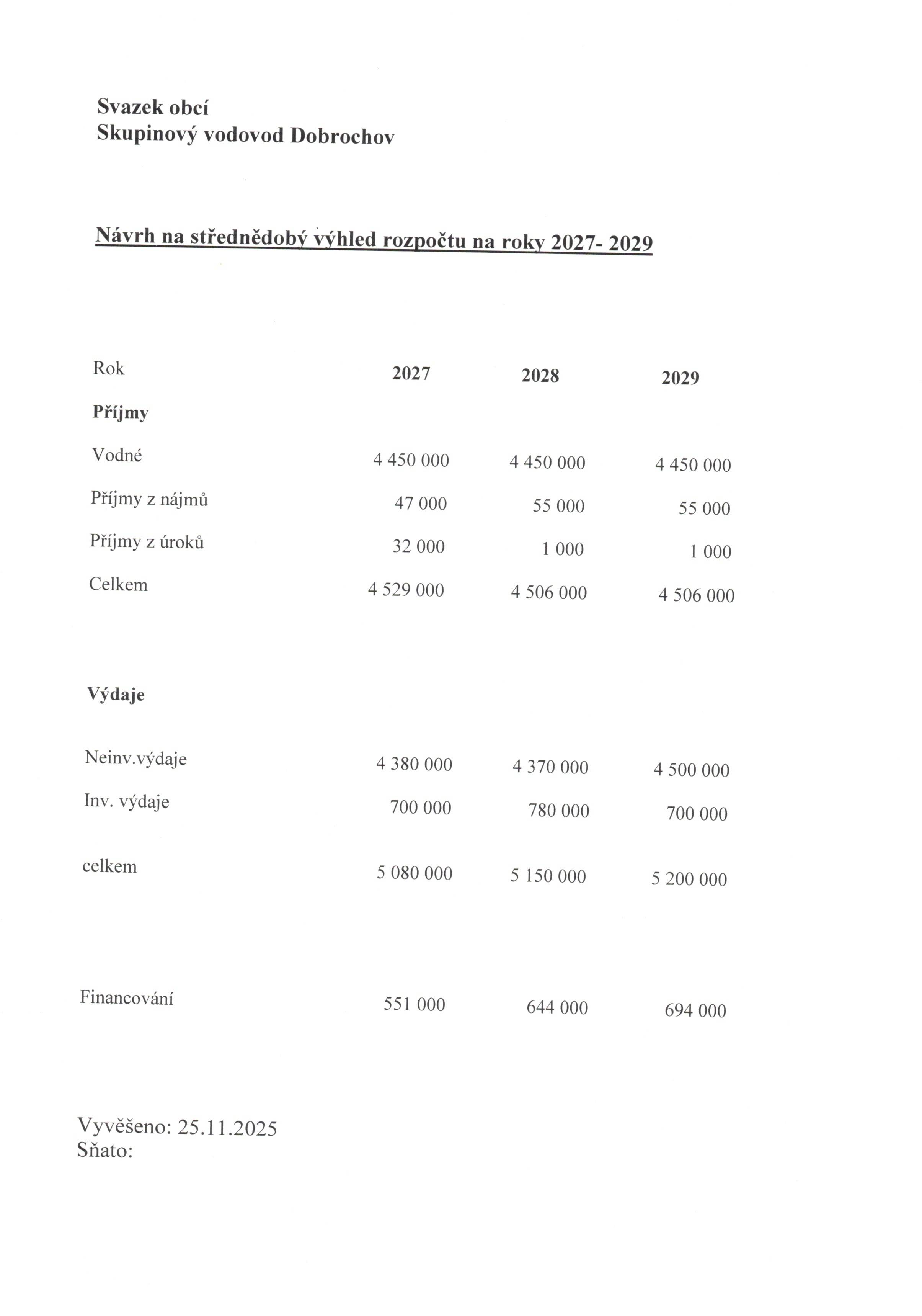 Návrh střednědobého rozpočtu Skupinový vodovod Dobrochov
